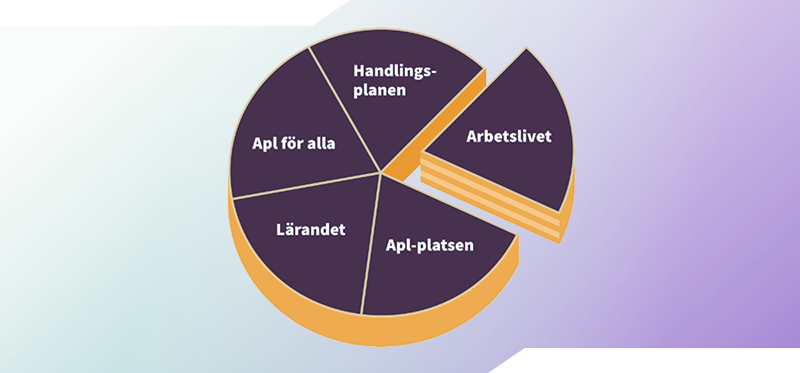 Utbildningen består av fem separata “tårtbitar”, där varje del kan genomföras under en dag. Delarna överlappar varandra, och för att säkerställa en hög kvalitet i Apl är det avgörande att skolan har alla delar på plats.